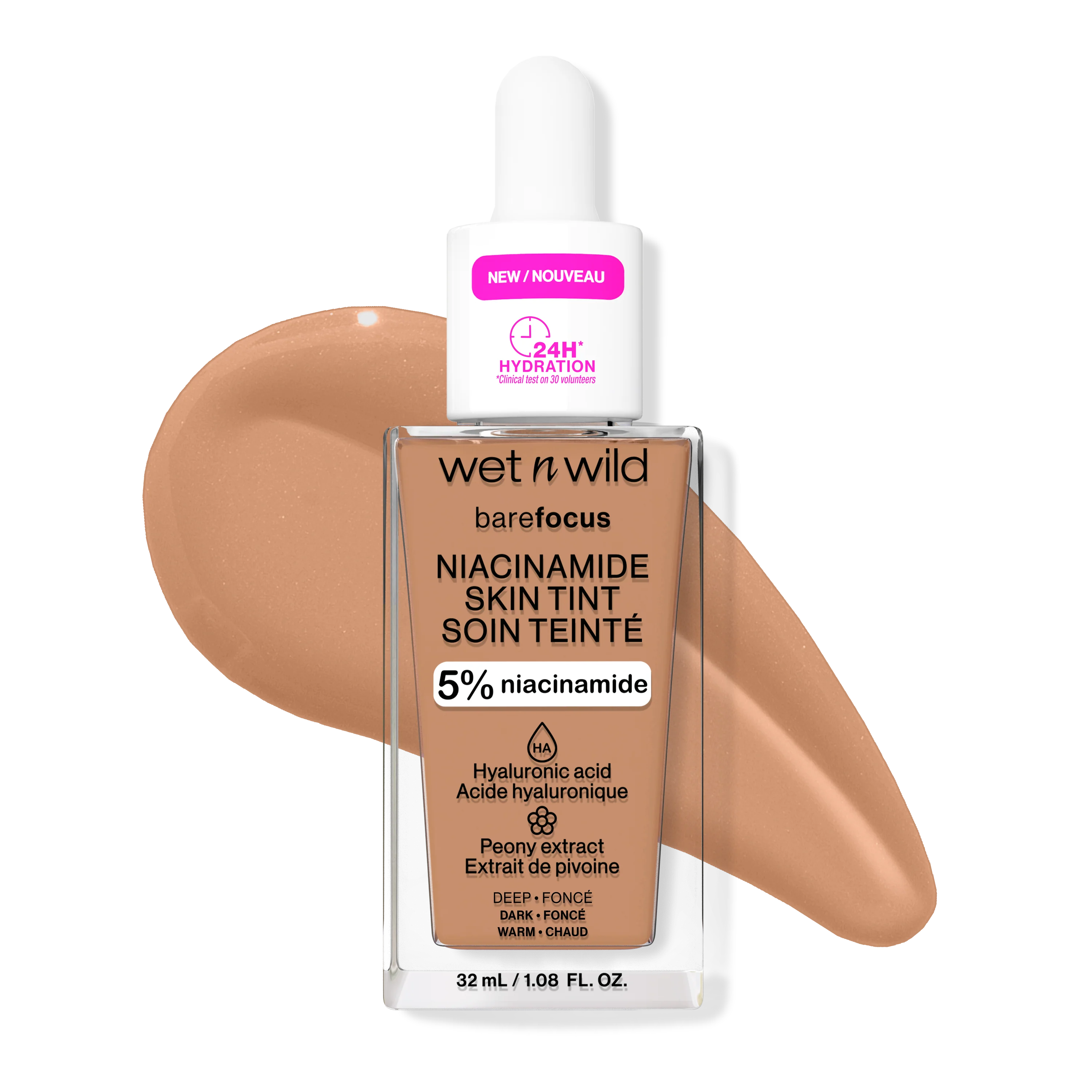 This luxurious, sheer-to-medium, buildable Skin Tint with 5% Niacinamide, Hyaluronic Acid, and Peony Extract delivers smoothing, natural perfection. Blurs imperfections, finishes with a soft satin glow, and perfects while concealing redness and blemishes so naturally, it will look almost undetectable. A clean, skin-loving serum foundation.